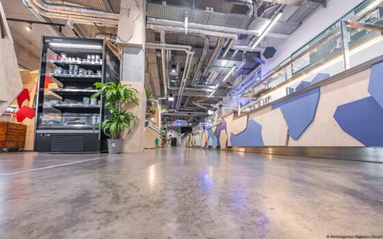 Bodenbelag: Planocem 45 (Zementestrich), geeignet für gewerbliche Flächen und Lagerbereiche
