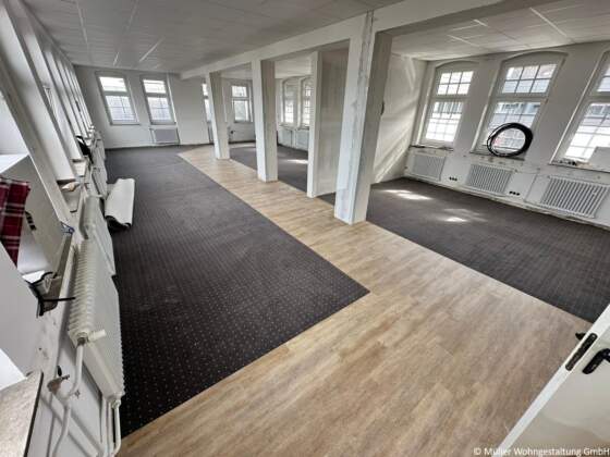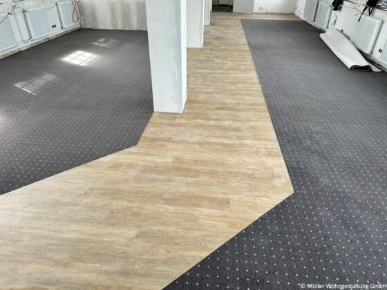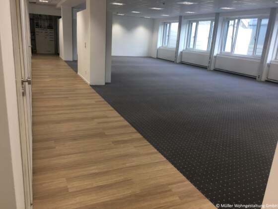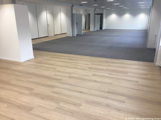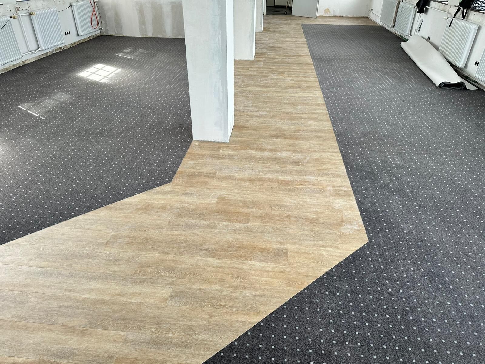Für die Renovierung der Büroflächen bei CES in Velbert führten wir die Bodengestaltung in zwei Bauabschnitten auf einer Gesamtfläche von 570 m²
