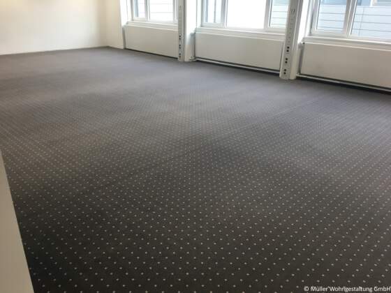 Ein Highlight des Projekts war der Textilbelag von Infloor Girloon (Artikel „Melange“). Hierbei handelte es sich nicht um einen Standardfarbton: Der Farbton wurde individuell festgelegt und per Digitaldruck direkt nach dem Tuften auf den Teppichboden