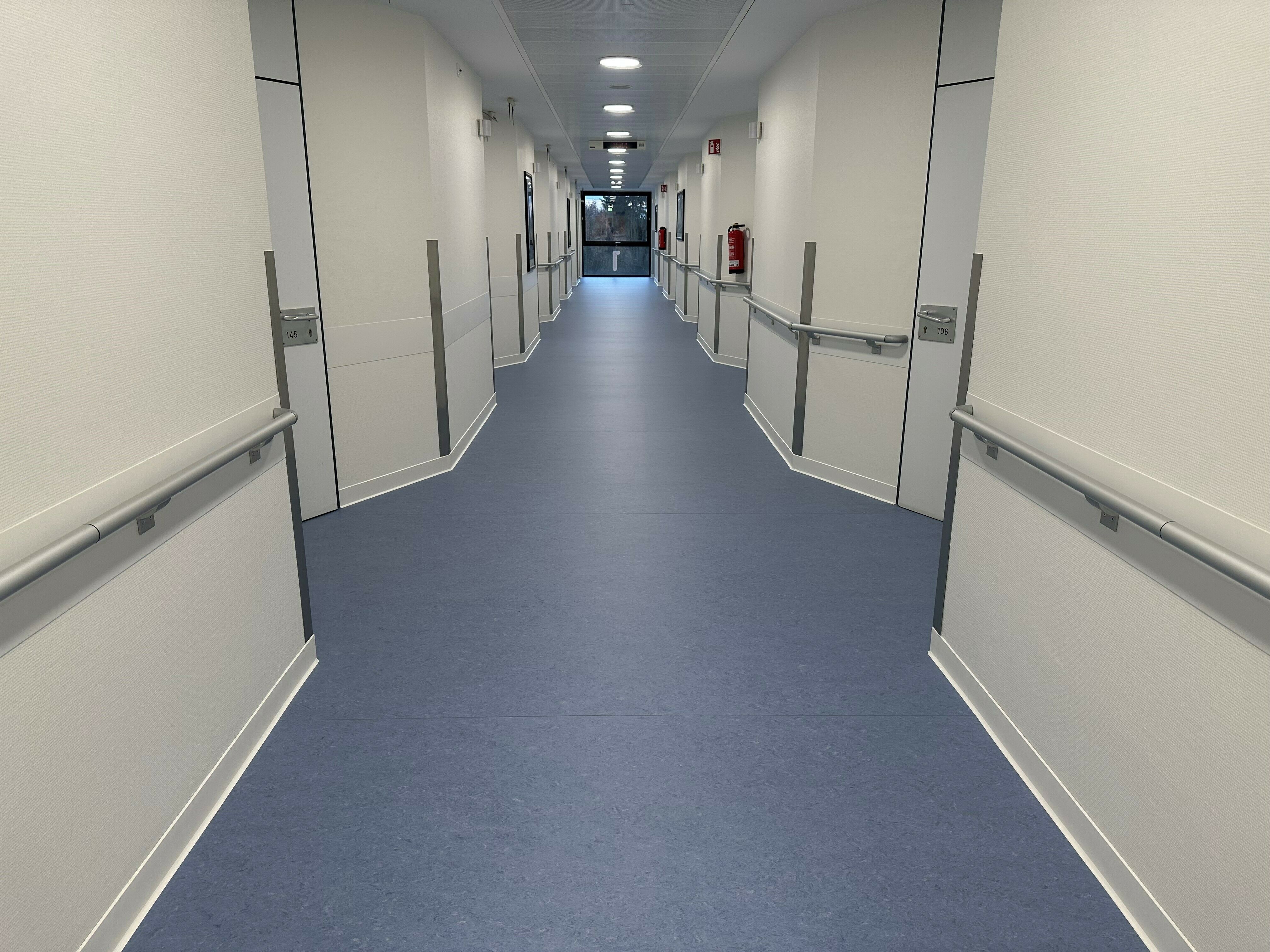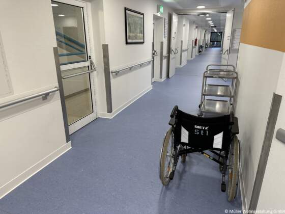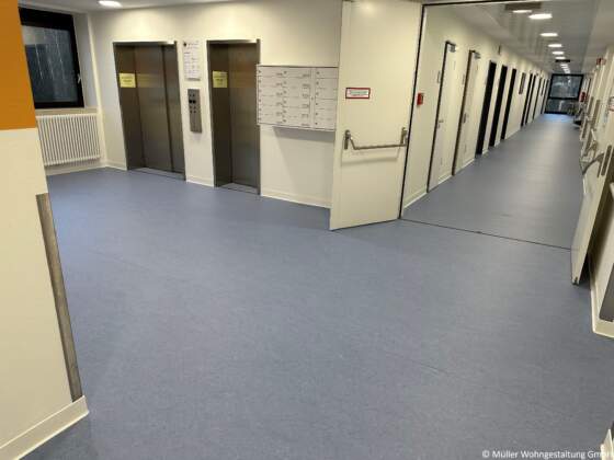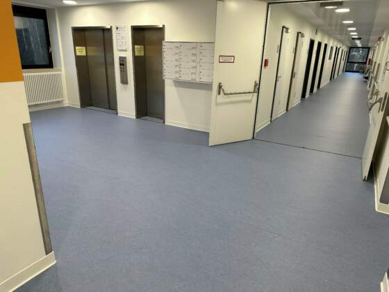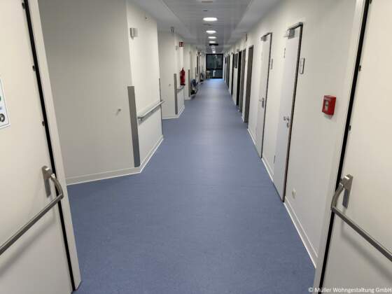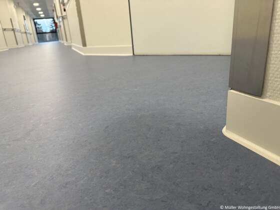 In den Stationen verlegten wir rund 330 m² PVC-Bahnenware von Gerflor Mipolam, ergänzt durch 300 m² Linoleum von Gerflor Mipolam in den Flurbereichen. Für einen sauberen Abschluss kamen 220 Meter Kernsockelleisten S100 der Firma Döllken Profiles zum Einsatz. Die eingesetzten Bauchemieprodukte stammten von Uzin Utz, wodurch eine dauerhaft belastbare und hygienische Bodenlösung sichergestellt werden konnte.