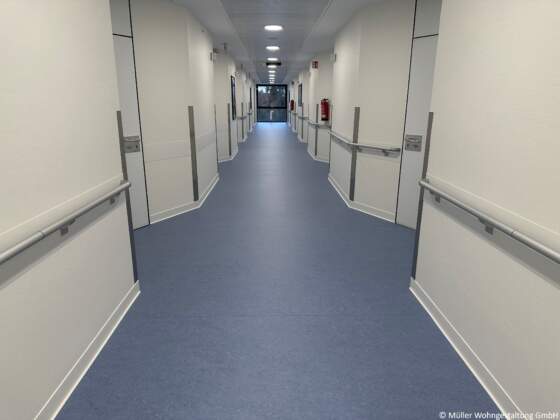 Besonderes Augenmerk lag auf der Umsetzung während des laufenden Klinikbetriebs. Dank strukturierter Abläufe und staubfreier Verarbeitung gelang es, die Bauarbeiten zuverlässig und ohne Störung des Krankenhausalltags abzuschließen.