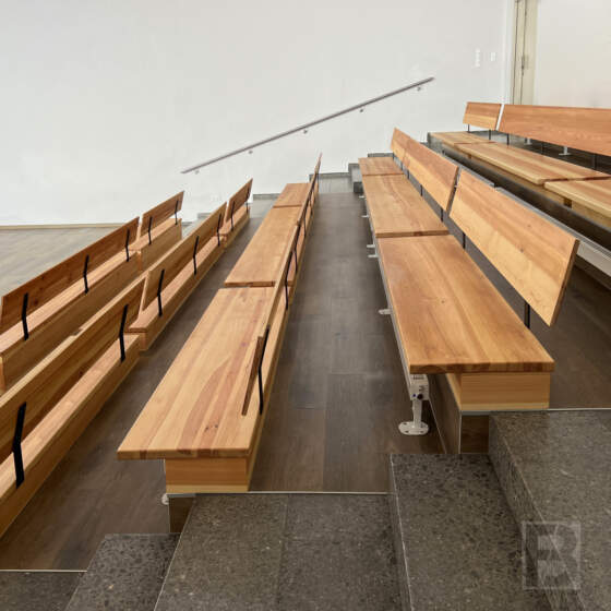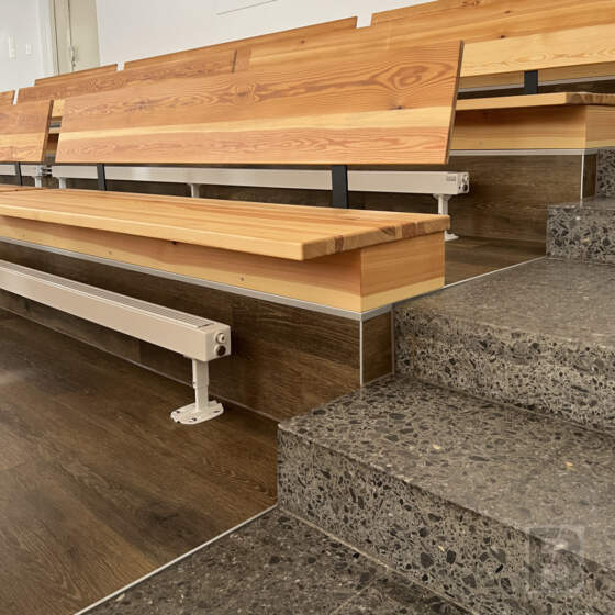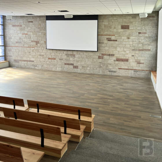 Die in die Fortbildungsstätte integrierte Kapelle wurde in einen Veranstaltungsraum umgewidmet. Dabei sind die tribünenartige angeordnete Podeste mit den Sitzbänken erhalten geblieben.