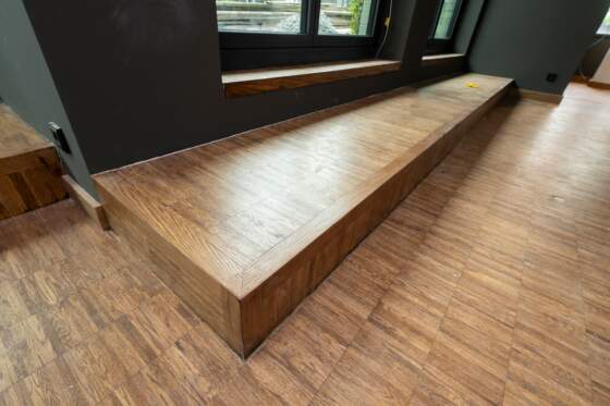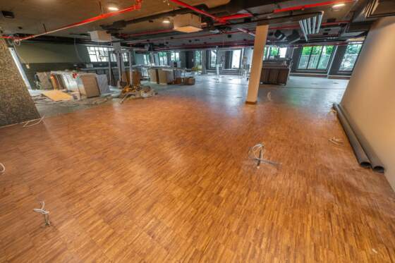 Verlegte Fläche: Unterboden und Oberbelag 8500 m³ auf fünf Etagen, angefangem auf 50 m Höhe